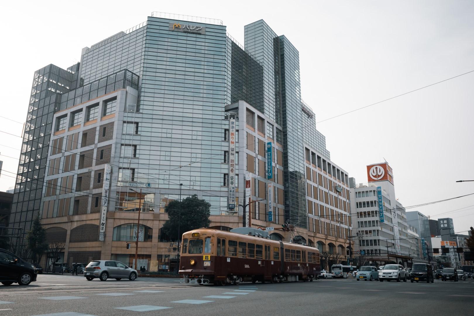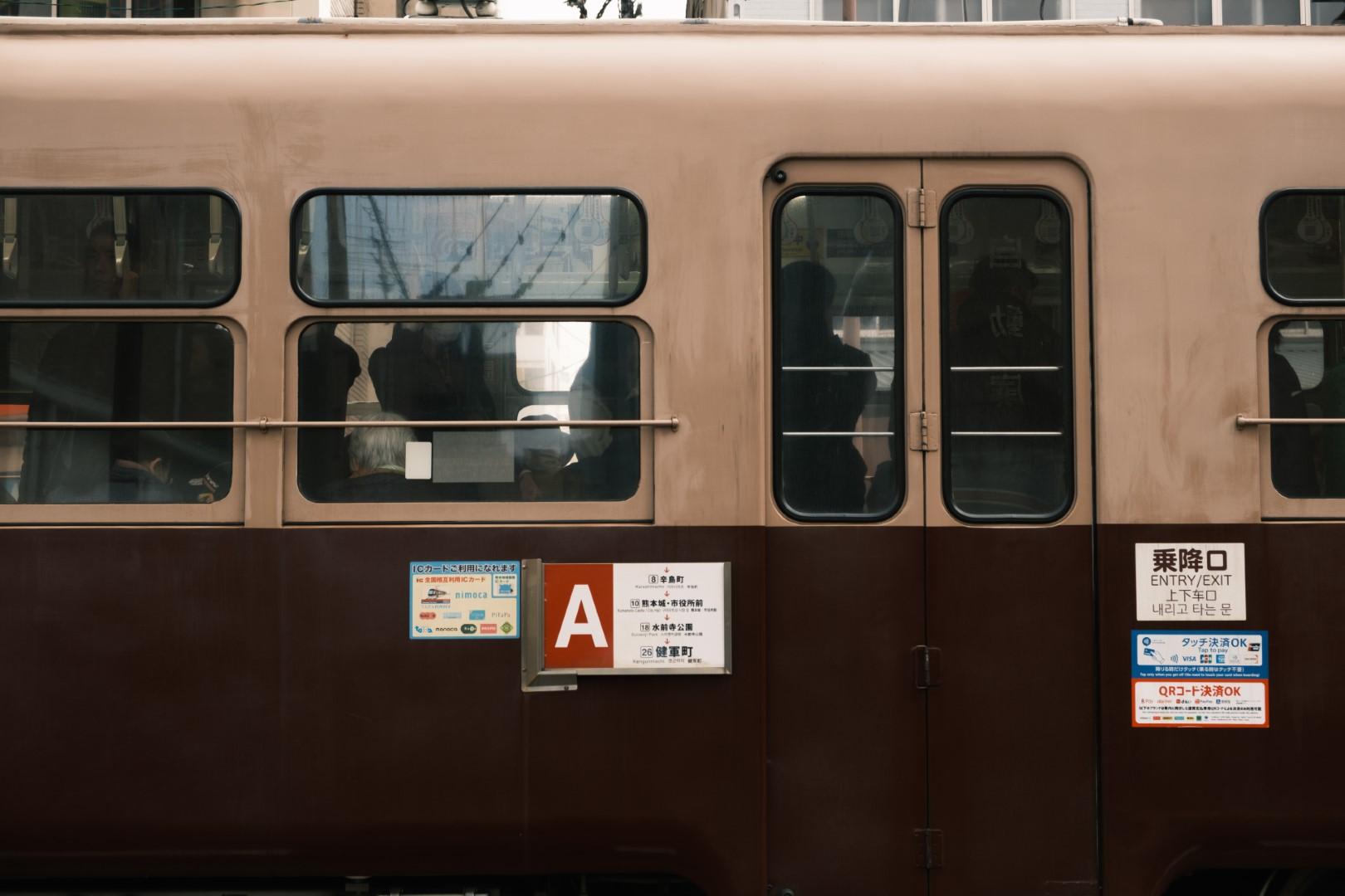 130人乗りのこの電車は、熊本市電では最大の定員。