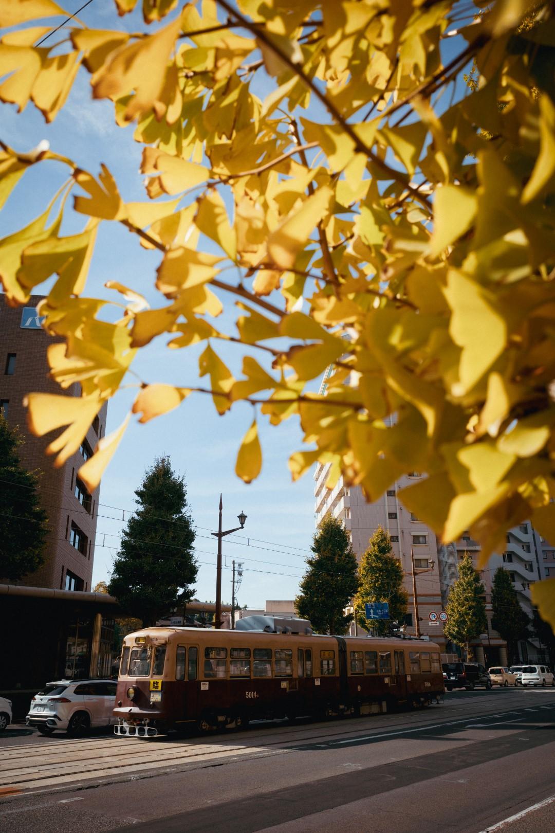 他の熊本市電とは違う、この電車だけの色。