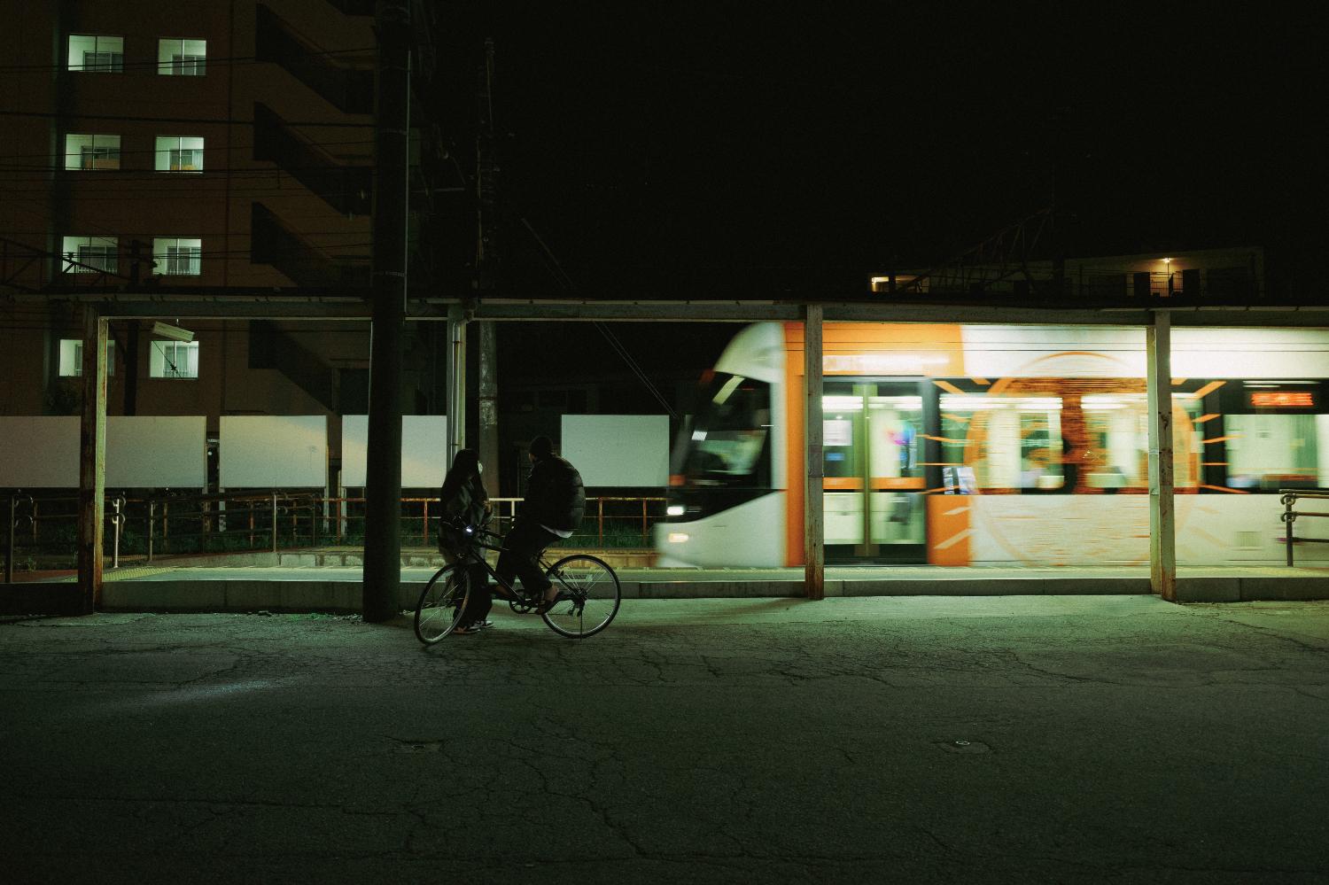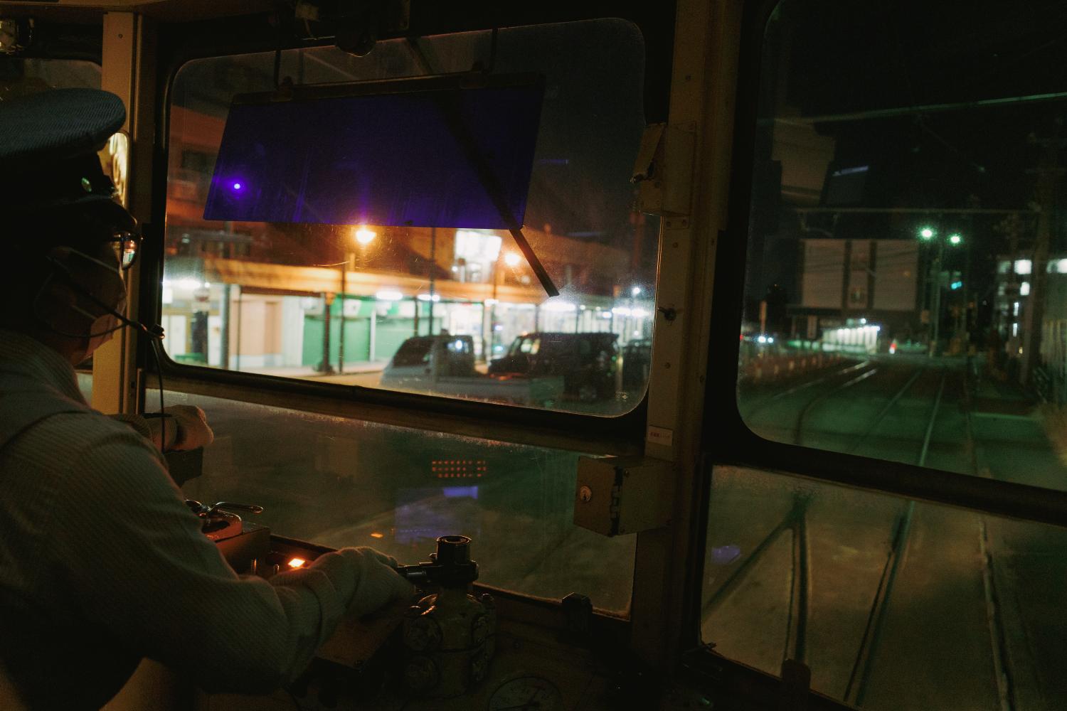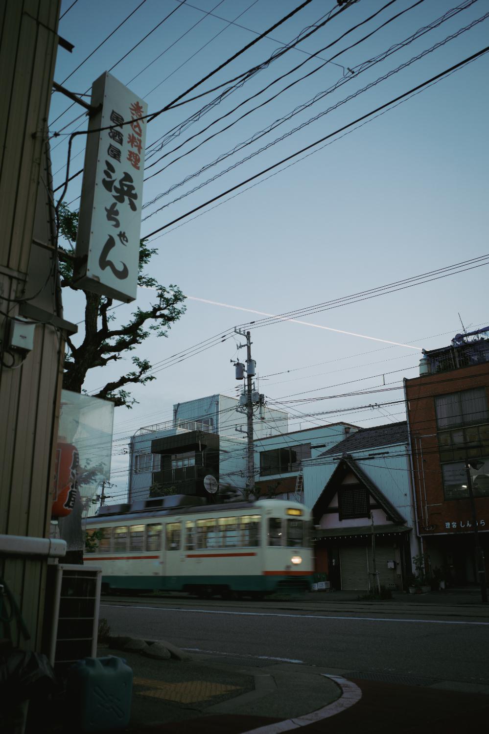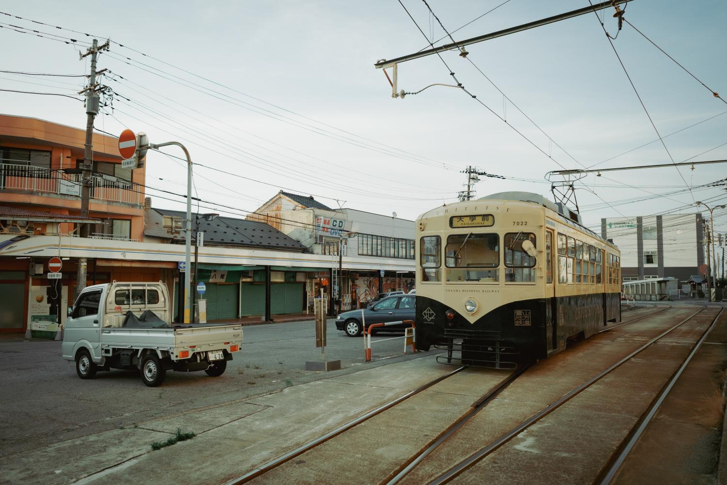 夜の南富山駅前は、デ7000型の心地よいコンプレッサーの音だけが響く。気づけば人もまばらだ。電車と送迎のクルマだけが佇む。