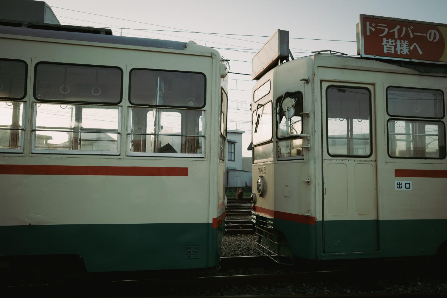 ここは市内電車だけの車庫だが、東急のお下がりの電車が置いてある。部品取りらしい。それにしたって、東京で乗り慣れた電車が1台だけ置かれていたら面喰らう。