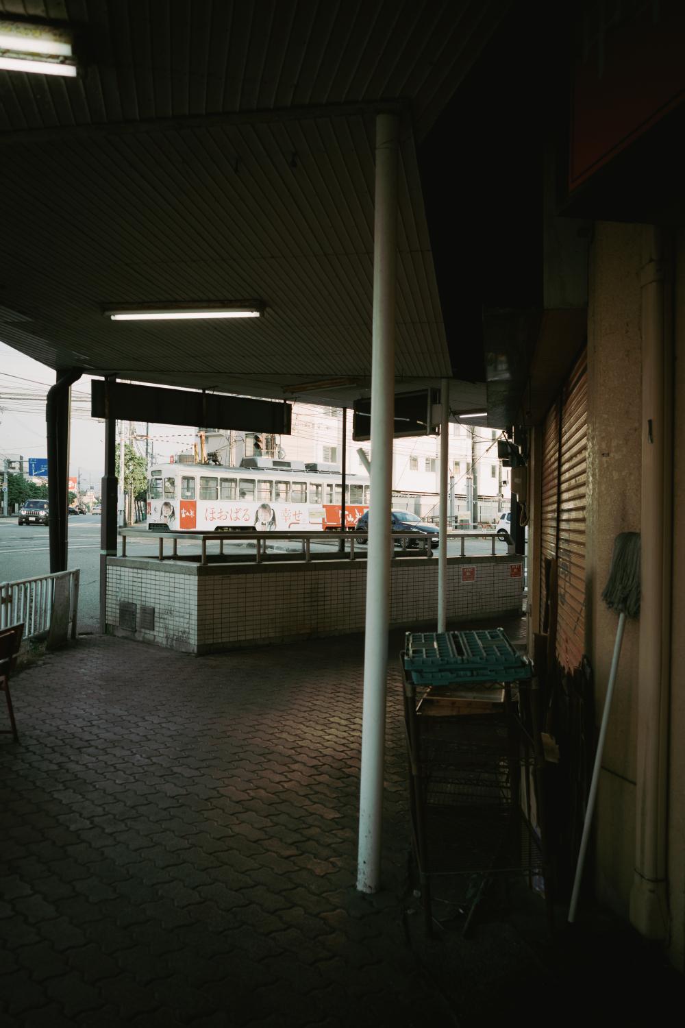 駅前にはだだっ広い広場というか駐車場があり、市電から降りてきてクルマに乗り込む人の姿も多い。