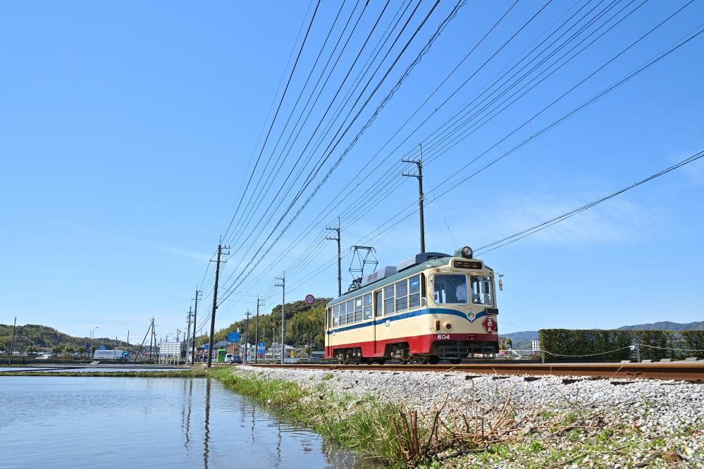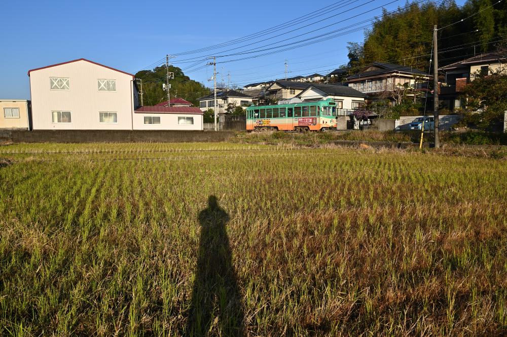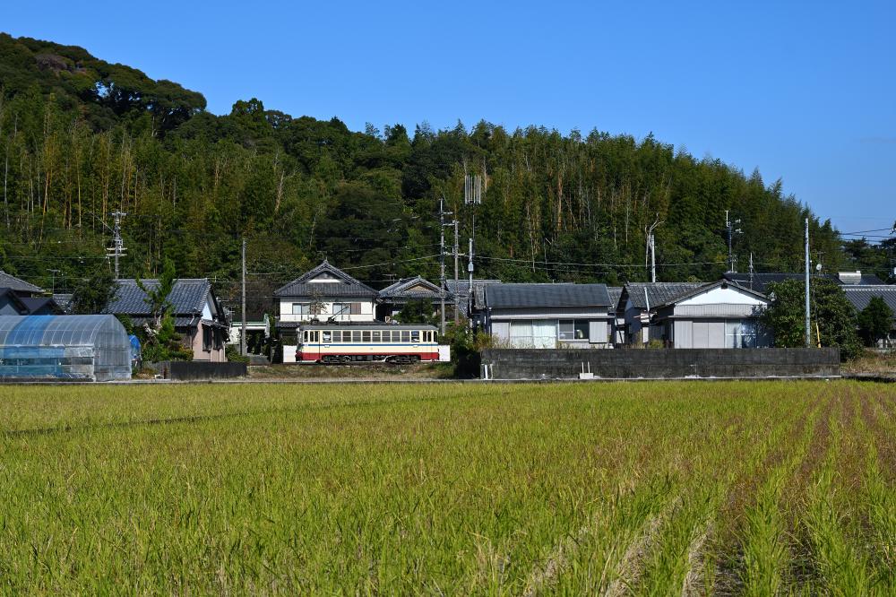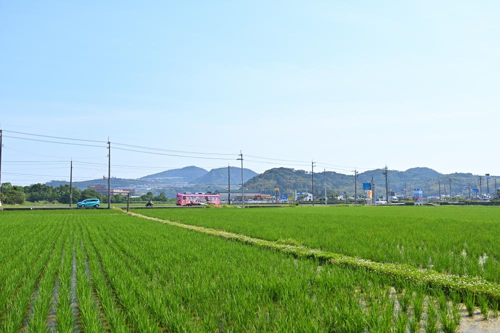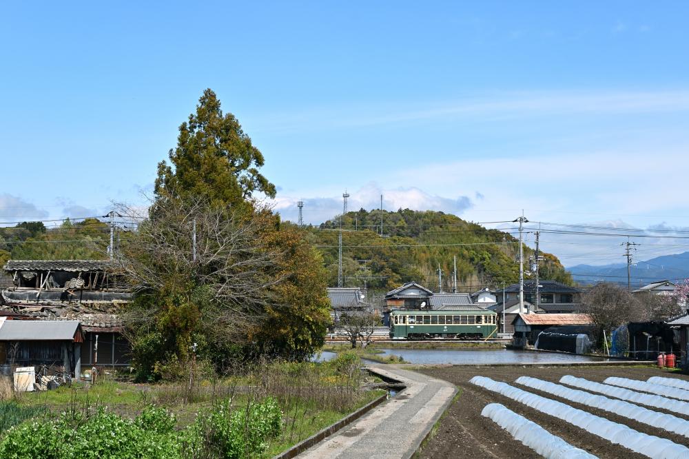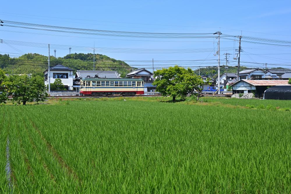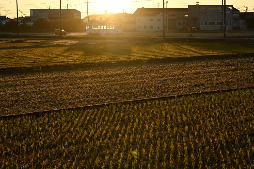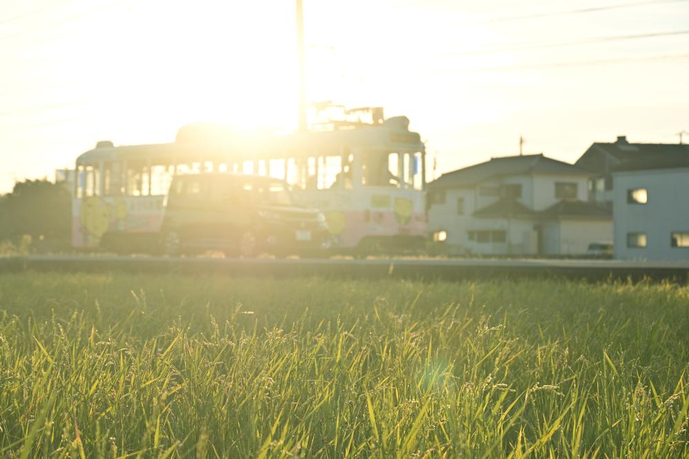 電車は開けた田園地帯につりかけの音を響かせ、