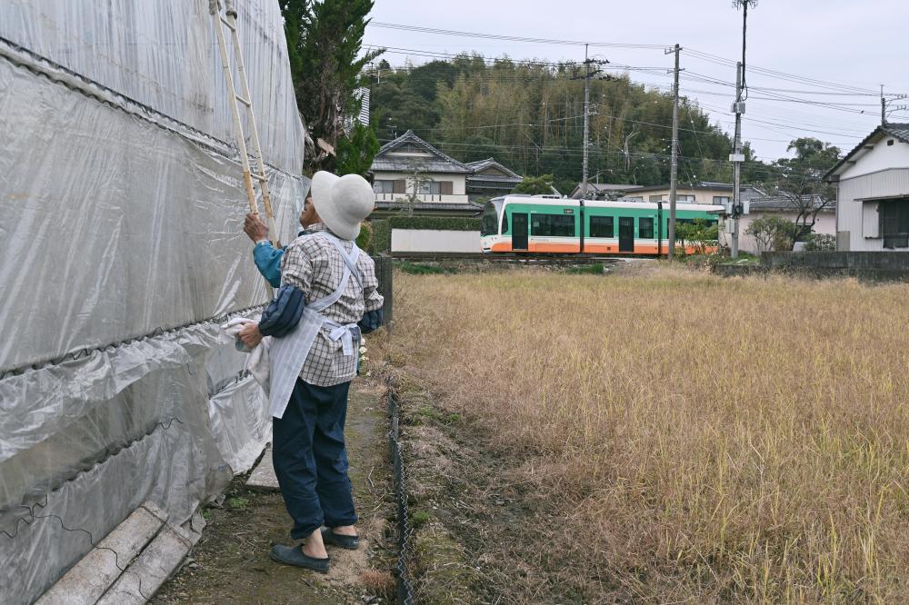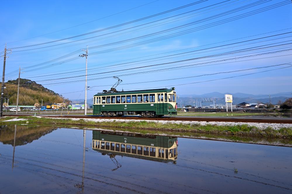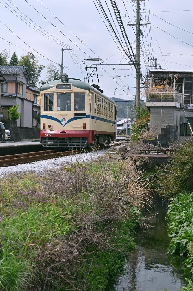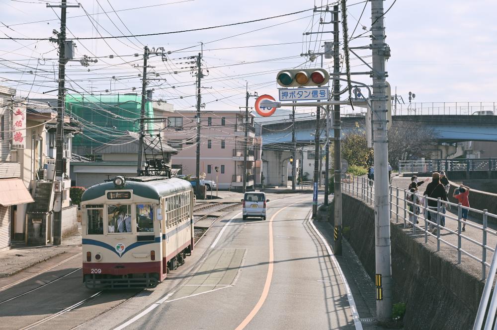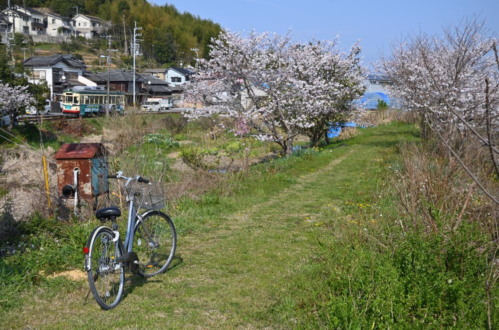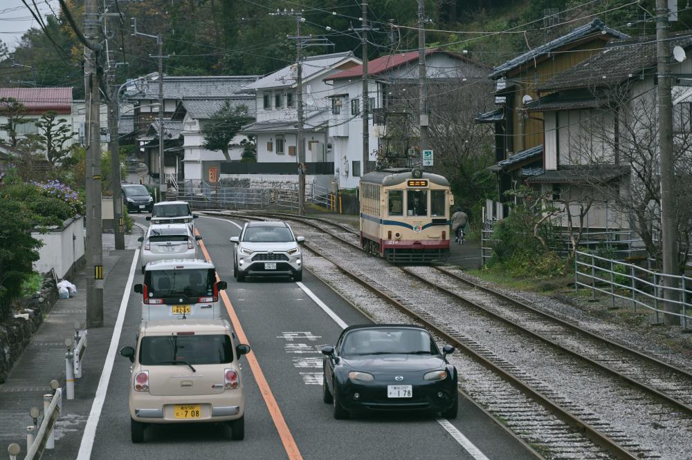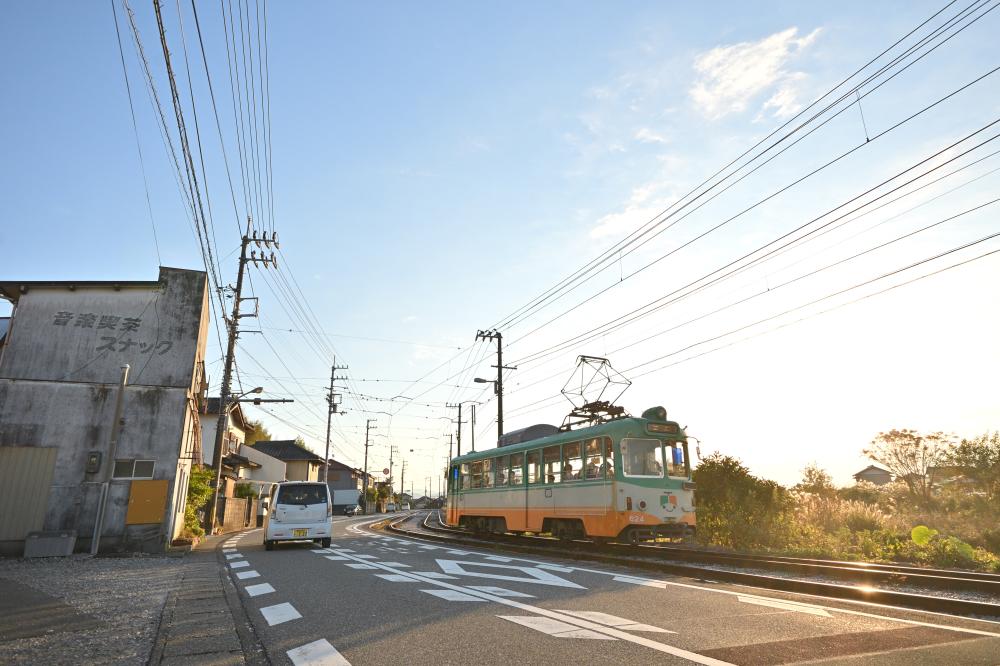 各所に残された田舎電車の情景。時折やってくる超低床車も、案外この景色に溶け込んでいる。