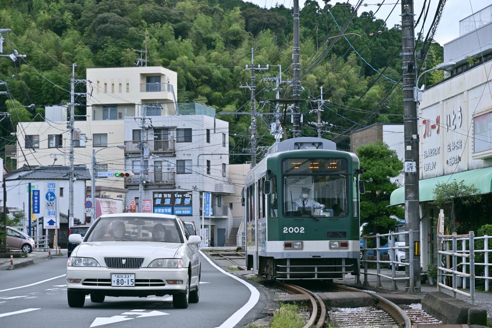 緑の樹林の中に、つりかけの音をこだまさせる。