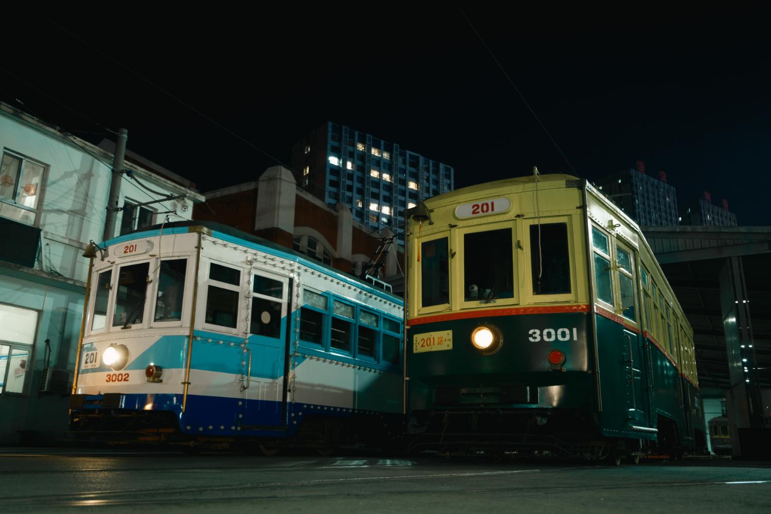 寝起きの街に、復刻塗装の2台が飛び出した。