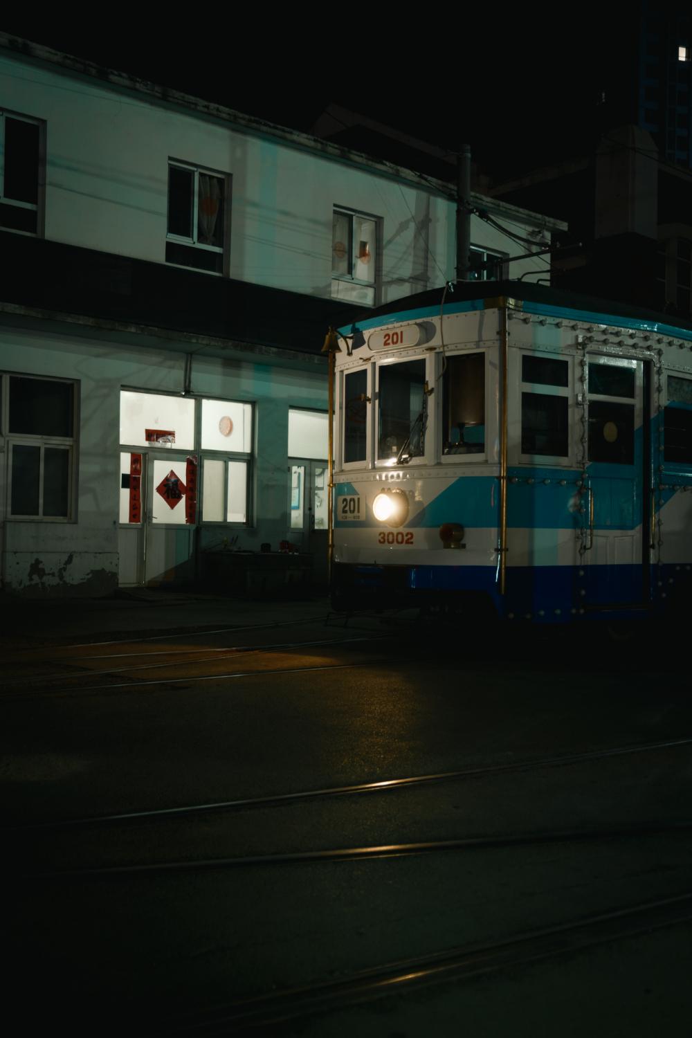 まだ朝の6時前だが、すでに車庫が動き始めている。掃除のおばちゃんが、3002号を磨いてくれていた。